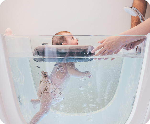 Die Float-Session ist ein leichtes Training, das dabei hilft, die Lungen, Muskeln und das Herz Ihres Kindes zu stärken. Das Gefühl des Wassers unterstützt die Gehirnentwicklung.